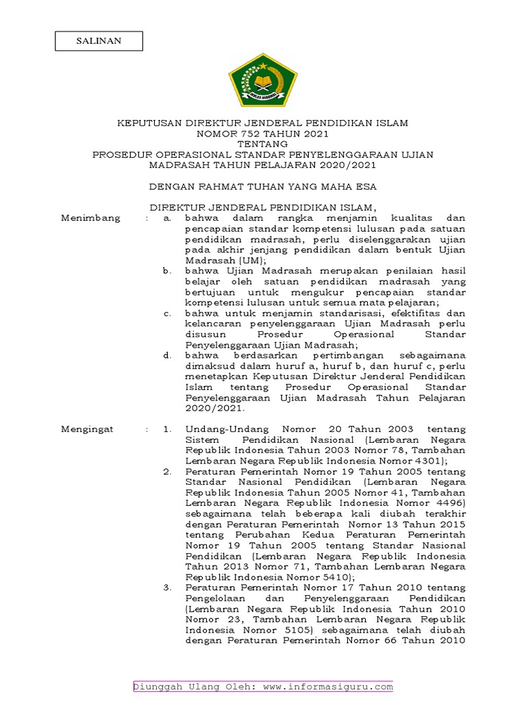 Sk Tentang Pos Ujian Madrasah Tahun 2021 2022 Pdf
